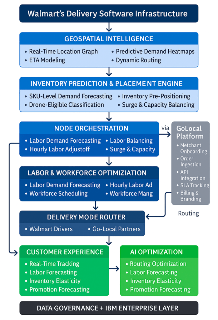 At the core of Walmart’s transformation is a multi‑layered system designed to orchestrate every component of the last mile: